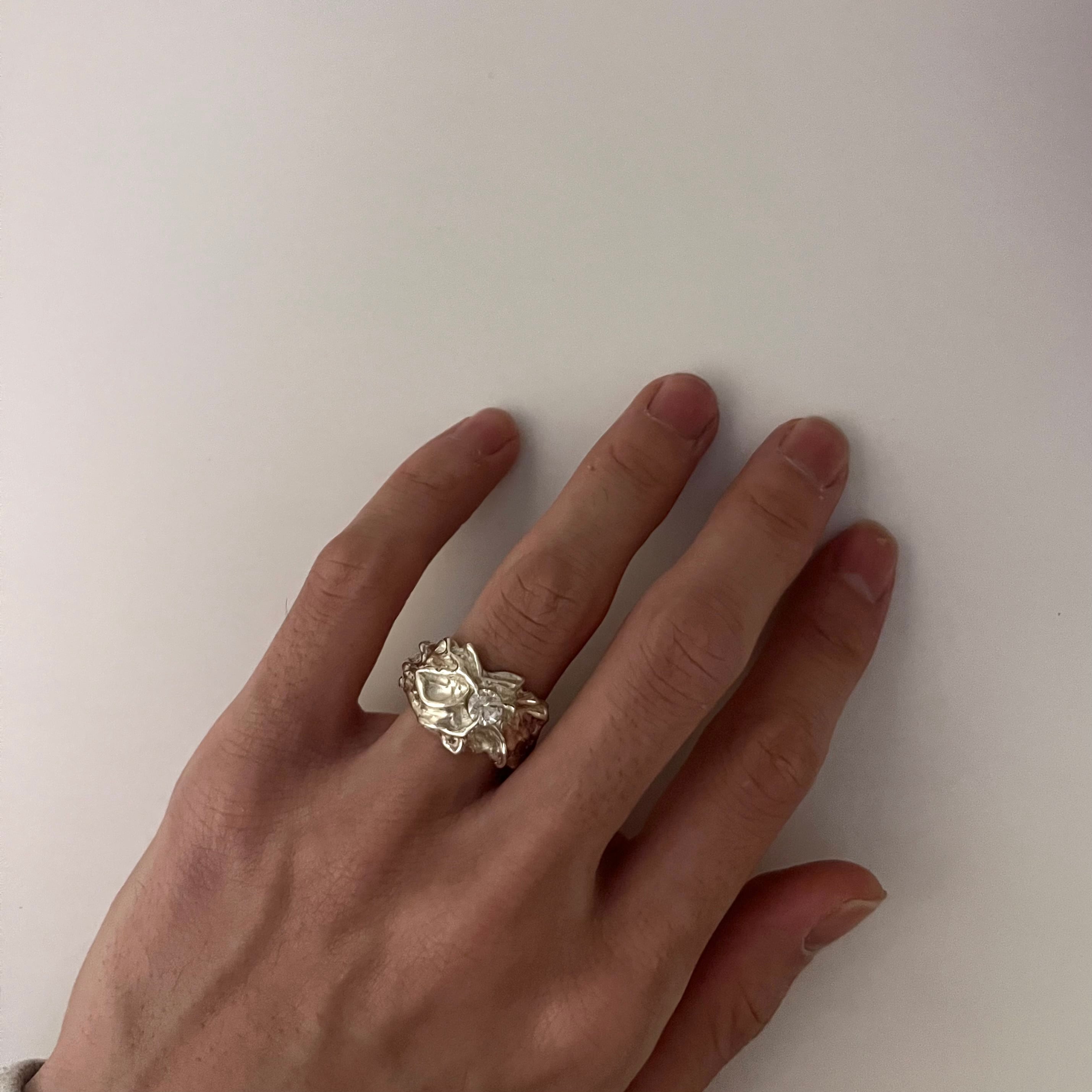 size : 縦 15mm 横 25mm モアサナイト 5mm Material:Silver925 ring size : 14号のみ